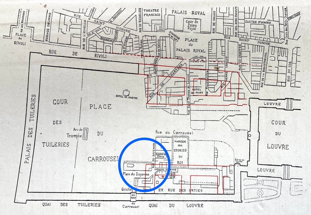 カルーゼル広場では、新しい建物が建造される一方、ボードレールが「白鳥」を書いた1859年以降になっても、例えばセーヌ河寄りのドワイヤネ(Doyenné)の方ではまだ工事が続いていた。その様子は当時撮影された写真からも見て取ることができる。