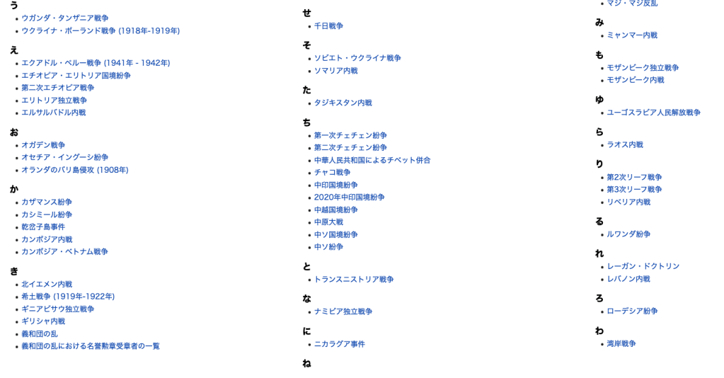 wikipediaの戦争に関するページを見ると、人間が犯してきた戦争がリストアップされている。