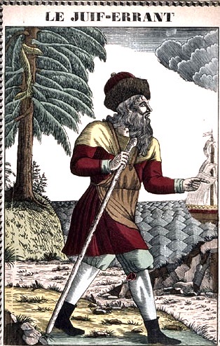 「さまよえるユダヤ人」は、手に棒を持ち、長い顎髭を生やした姿でしばしば描かれた。その姿は、続く詩節で展開されるスフィンクスの謎かけの準備になっている。