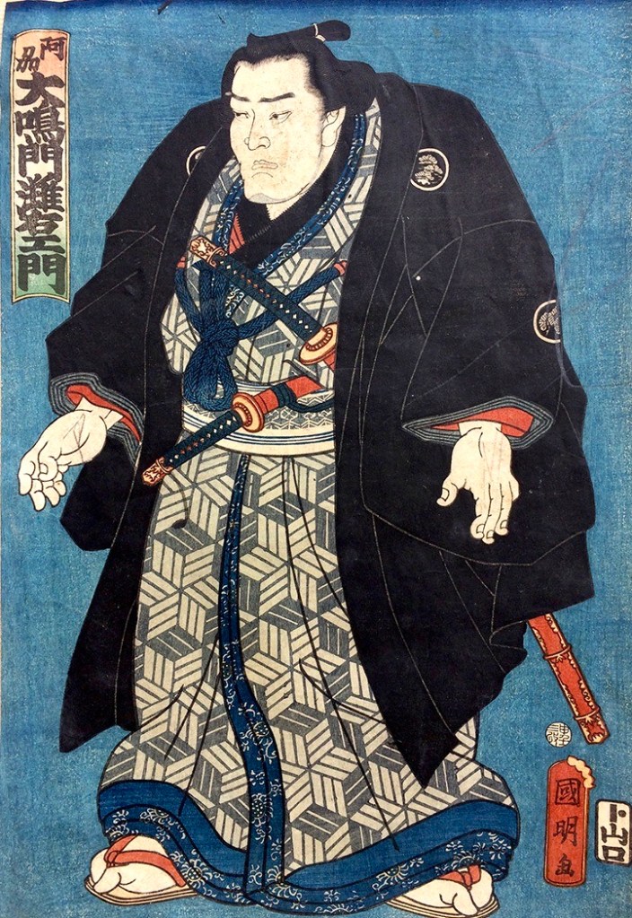全体の色調は、背後に掛けられた浮世絵(歌川国明「大鳴門灘右エ門」)と近いものになっているが、その色彩はゾラが施したものであることが、歌川国明の実物との比較から分かってくる。