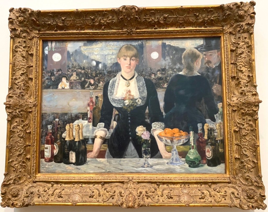 マネの「フォリー・ベルジェールのバー」の中で、鏡に映っているはずの客たちの空間が、カウンターの女性のいる現実との関係でどこかギクシャクしているために、現実から自立して存在しているようにも見える。