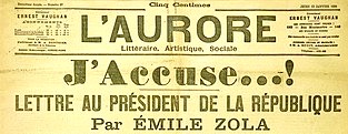 1890年代になると、軍部の陰謀によってスパイ容疑をかけられたユダヤ人のアルフレド・ドレフュス大尉を弁護するため、1898年に「私は告発する!」と題された大統領宛の公開状を新聞に発表し、軍部の不正を強く非難した。