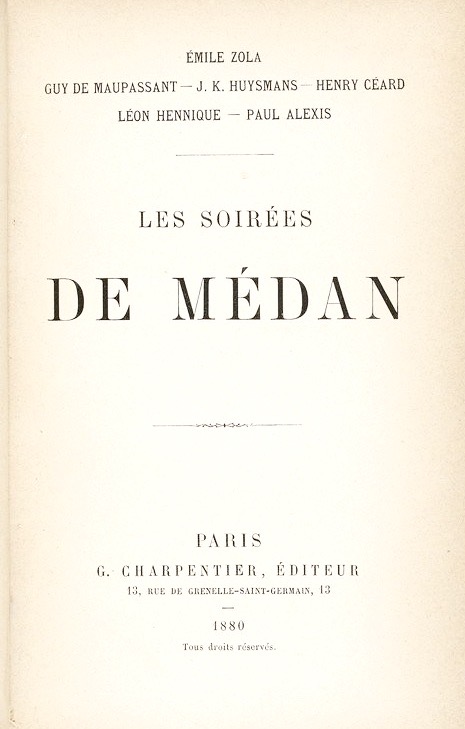 1880年、エミール・ゾラが主導する形で、自然主義を旗印にし、6編の短編小説からなる『メダンの夕べ』が出版された。