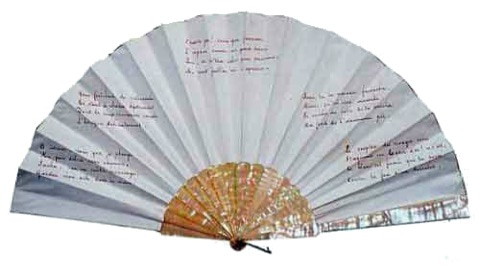 「扇 マラルメ夫人の」は、1891年1月1日にマラルメが妻のマリアに送った詩で、実際に扇の上に書かれている。つまり、扇が詩なのだ。