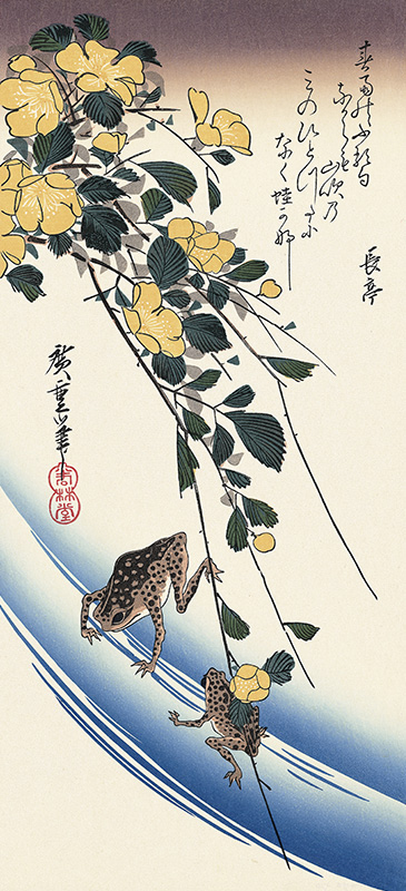 その理由は、和歌や芭蕉以前の俳諧の伝統の中では、「蛙(かはず)」といえば鳴き声を取り上げるものであり、そして、蛙といえば山吹と決まっていたからである。