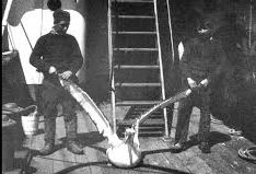 一人の船員は、パイプで嘴をつつく。