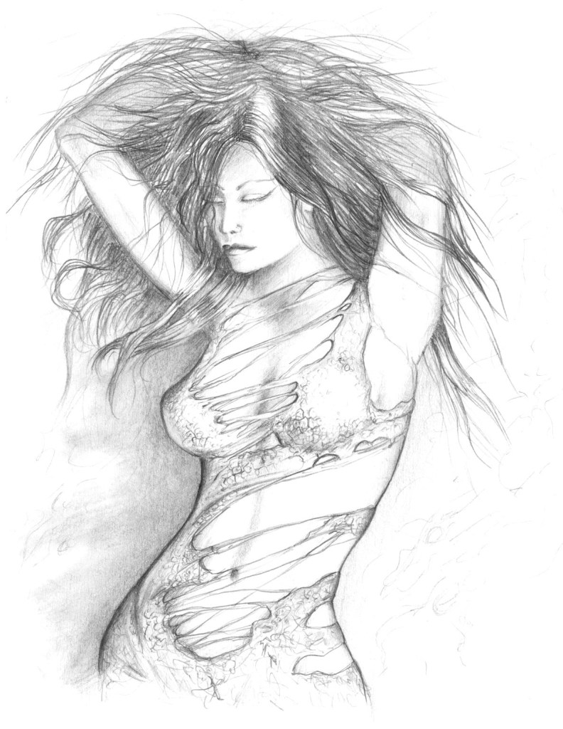 そして、その震えが、私のはだけた胸(mon sein nu)の島々(îles)、つまり乳房の間で、いつまでも続いている(Persiste)。
