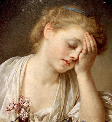 そこで、今にも涙が一粒(une larme)溶け(qui fonde)、流れ出そうとしている。手はそれを予期し(attend)、涙を拭おうする。