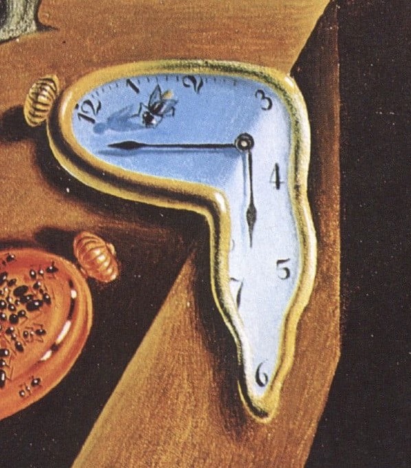 例えば、最初に見た「記憶の固執」の中で描かれた、溶け出したような時計だけを見ると、文字盤の文字をはっきりと読み取ることができるし、丸い外周の変形の仕方が現実味を帯びていることに気づく。