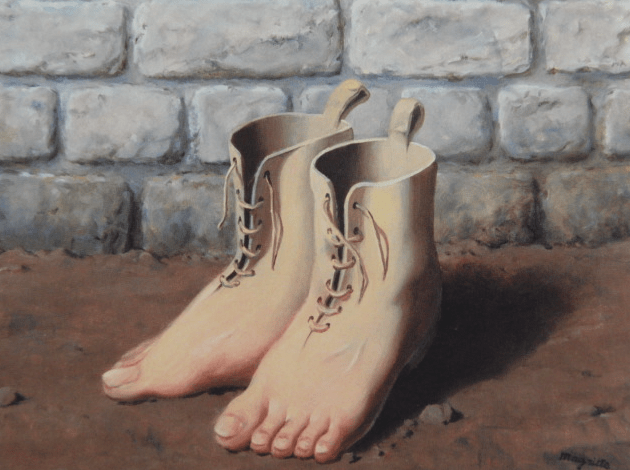 ルネ・マグリットの「赤いモデル」は、過去のだまし絵を思わせながら、シュルレアリスムの核となる現実性と非現実性を合わせ持ち、その不自然で不思議なイメージが、見る者を驚かせ、不安な気持ちにさせる。