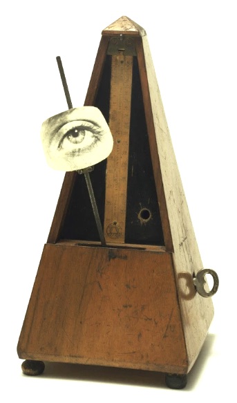 しかし、既製のメトロノームと女性の目の白黒写真をの組み合わせだけで作られたその作品は、オブジェの典型だといっていい。