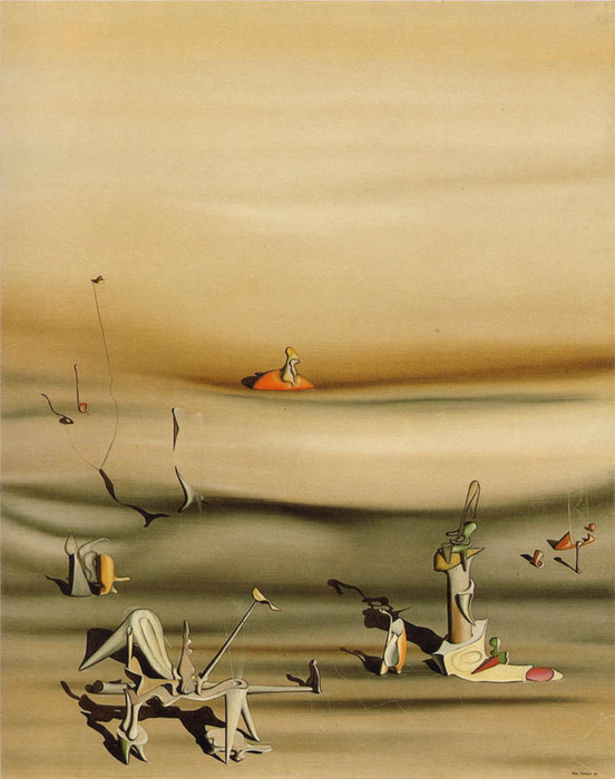 イヴ・タンギーの超現実世界は、エンデやデルヴォーと比べると、かなり無機質な空間の広がりが感じられ、そこにある事物も物質性が強い。