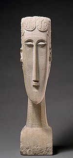 その時期にモディリアーニの製作した彫刻を見ると、アフリカの彫刻の影響が驚くほどはっきりと現れている。