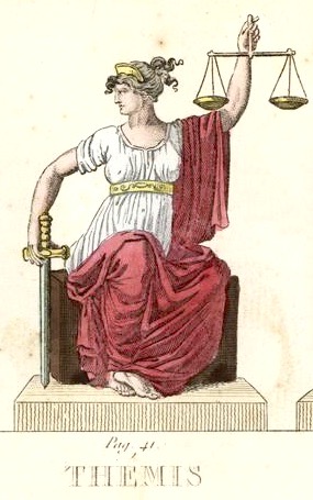 「裁判官(juge)」、「正義と不正の法(lois du juste et de l’injuste)」だけではなく、「天秤(balances )」や「重さを計量する(pesé)」も測る役割を果たすことから、裁判を連想させる。