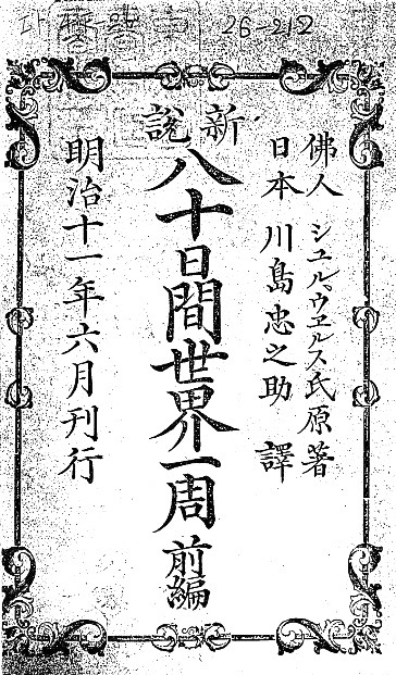 1878(明治11)年、フランス語原典に依拠した最初の翻訳書である、川島忠之助訳シェル・ウエルヌ『八十日間世界一周』が刊行された。
