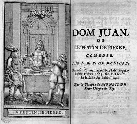 モリエールの『ドン・ジュアン』でも、饗宴に出現した石像に手を触れられた瞬間、ドン・ジュアンは雷に打たれ、大地が開き、深淵の中に落ちていく。