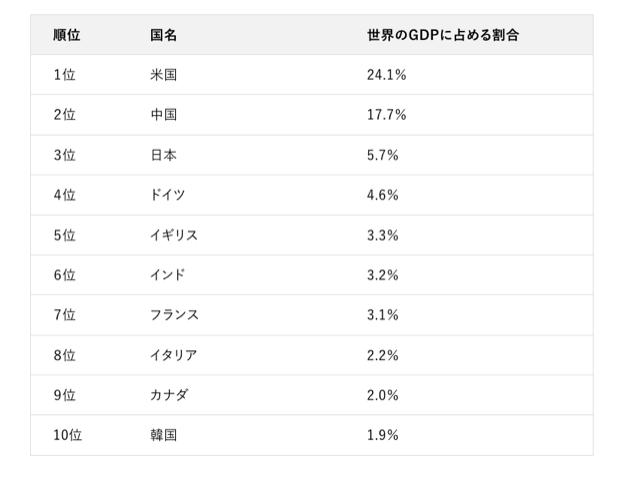 GDPが経済力を示す数字としてどの程度有効かは議論があるが、数字だけ見ておくと、今後、欧米側の数字が減少し、反対側の数字が上がっていくことが予想されている。