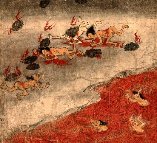 それらは、10世紀末、平安時代の中期に書かれた源信の『往生要集』などで説かれた六道、つまり、 「地獄、餓鬼、畜生、阿修羅、人間、天人」を映像化したものと考えられる。