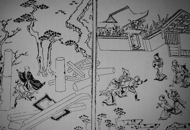 都のほとりには、在々所々(ざいざいしょしょ)、堂舎(どうしゃ)塔廟(とうみょう)ひとつとして全(まった)からず。あるいは崩れ、あるいは倒れぬ。塵(ちり)灰(はい)立ち上りて、盛りなる煙のごとし。