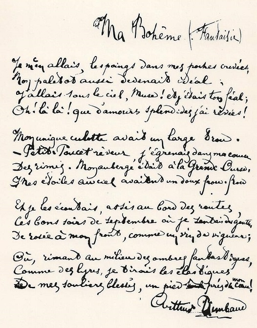 「わが放浪(ファンテジー)Ma Bohême (Fantaisie)」は、1870年10月に、年長の友人ポール・デメニーに預けた手書きの詩22編の中の一編。
