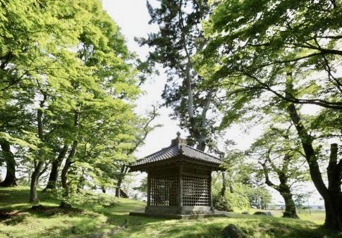 秀衡が跡(あと)は田野(でんや)になりて、金鶏山(きんけいざん)のみ形(かたち)を残(のこ)す。