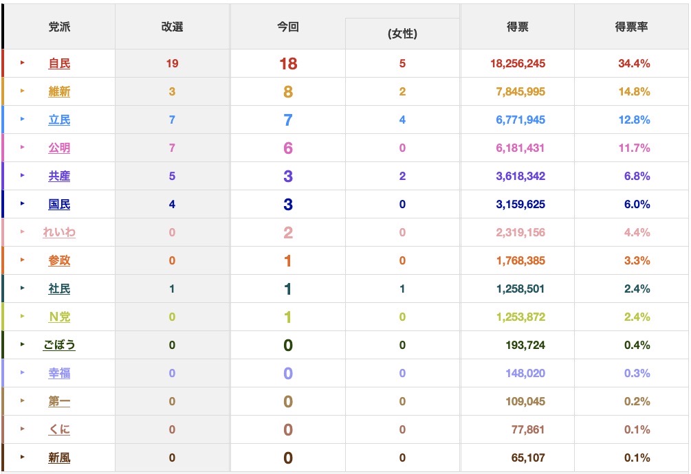 現在の選挙制度において、そして、参議院の比例代表の枠組みでは、この結果が民意の反映ということになる。