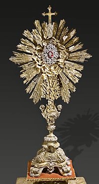 一般的には、聖体を納める中央にガラスをはめて、その周りは太陽の光線が出たような形をしている。