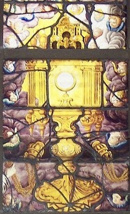 その光は、ステンドグラスの上に聖体顕示台の姿を描き出す。