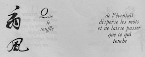 Que le souffle de l’éventail disperse les mots et ne laisse passer que ce qui touche