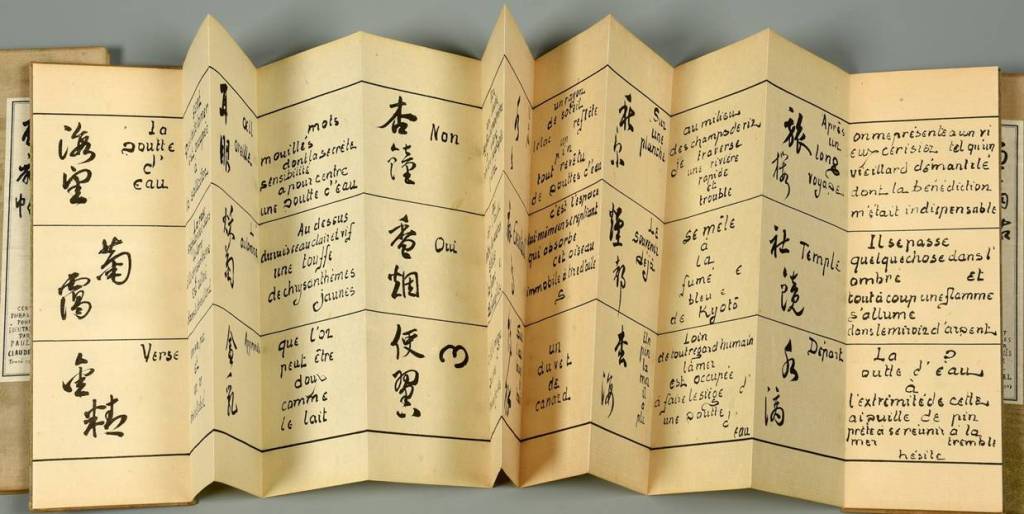 俳句は、わずか17の音で宇宙全体を表現することさえできる。フランス語の詩ではそれほどわずかな音で、俳句ほど無限に近づくことは難しい。しかし、クローデルが扇の上に書き付ける短詩は、心に触れること(ce qui touche)を魂に伝え、沈黙の言葉に近づくことを望んでいる。