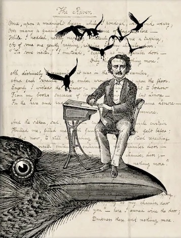 Une fois, par un minuit lugubre, tandis que je m’appesantissais, faible et fatigué, sur maint curieux et bizarre volume de savoir oublié — tandis que je dodelinais la tête, somnolant presque : soudain se fit un heurt, comme de quelqu’un frappant doucement, frappant à la porte de ma chambre — cela seul et rien de plus. (Mallarmé)