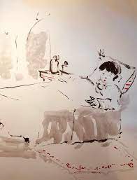 語り手は、ベッドの上でうつらうつらしている子ども時代の「私」の外的な状況と、心の中に浮かぶ内的な思いを、交差させて語っている。