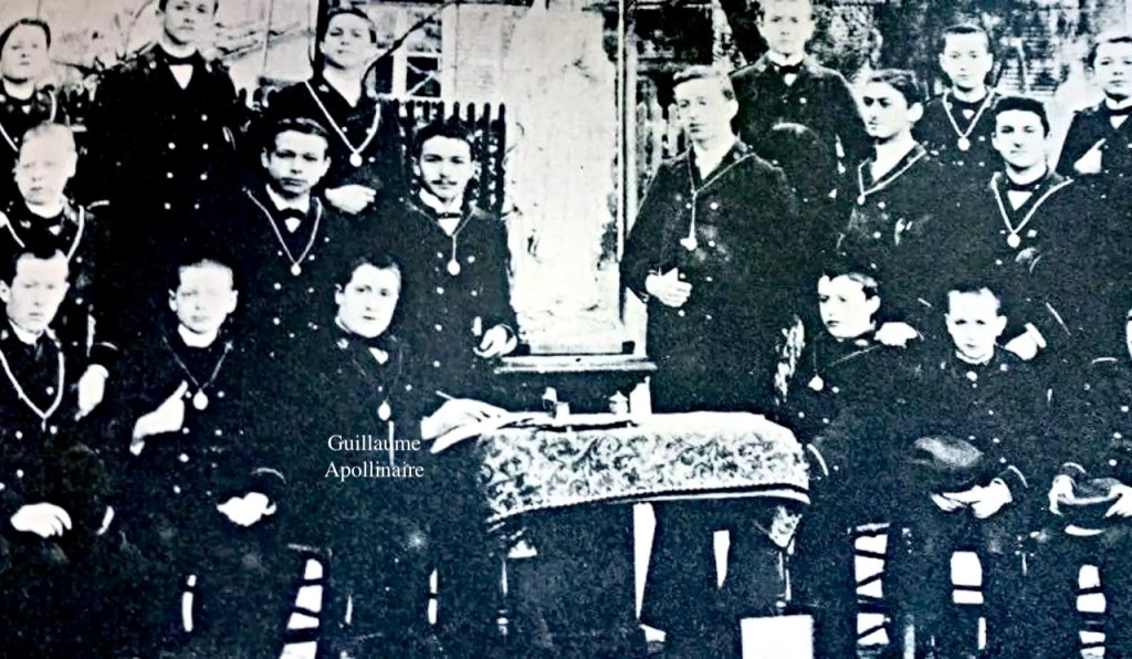 アポリネール少年は、聖シャルル校(collège Saint-Charles)に通っている間、成績が優秀なだけではなく、宗教活動にも熱心な敬虔な(pieux)子どもであり、「処女懐胎信徒の会」(Congrégation de l’Immaculée Conception)の書紀をしていたことが知られている。