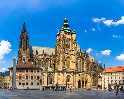 サン・ヴィット大聖堂は、プラハの市街を一望でき、プラハ城も立っているフラッチャニの丘に位置する。