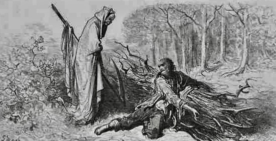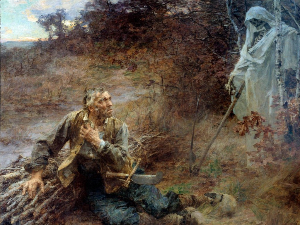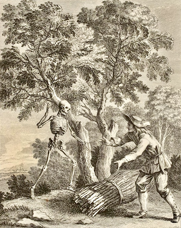 そのことを知ると、ラ・フォンテーヌの寓話における木こりの姿勢が際立っていることがはっきりする。死を恐れるどころか、自分を助けるようにと死に要求する。