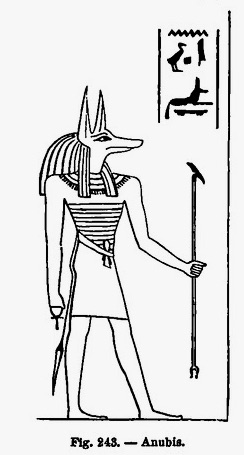 マラルメは『古代の神々(Dieux antiques)』の中で、「アヌビスは犬かジャッカルの頭を付けた姿で描かれる(Anubis est représenté avec la tête d’un chien ou d’un chacal.)」と記し、アヌビスの挿絵(fig. 243)も付けている。