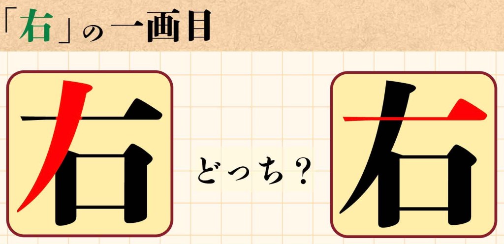もしも日本の小学校で、最近になって、「右」を横線から書かせる指導がなされているとしたら、中国式の書き順の方が子どもたちにとって覚えやすいということを考慮した結果かもしれない。