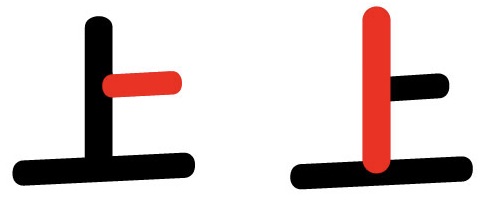 「上」は書き順が変わった漢字の例としてよく取り上げられる。