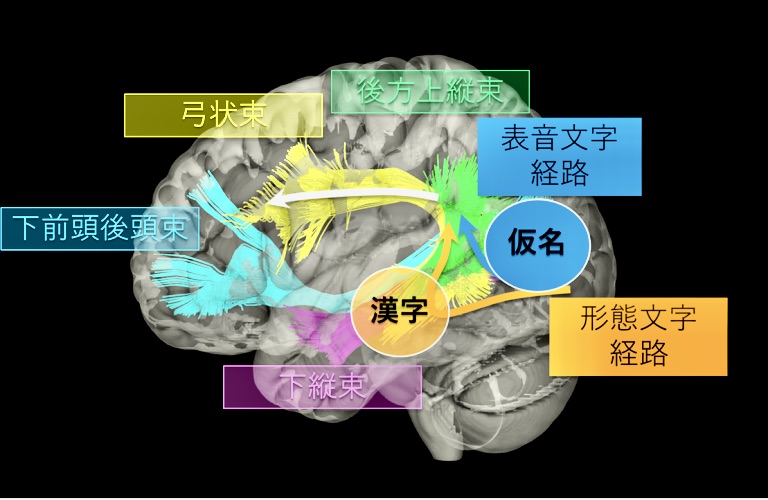 ちなみに、脳と言語機能に関する最近の研究によると、表意文字と表音文字の音読に関して、脳皮質の中の部位が異なる可能性があり、さらに、漢字と仮名の音読に関わる神経線維が相互的に干渉することはなく、別個なものであることが明らかになったという。