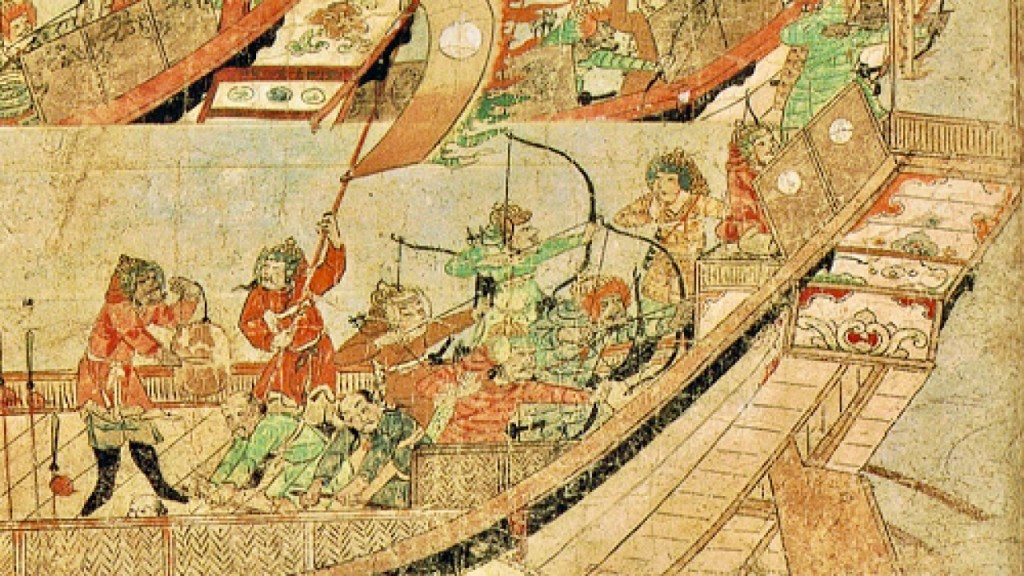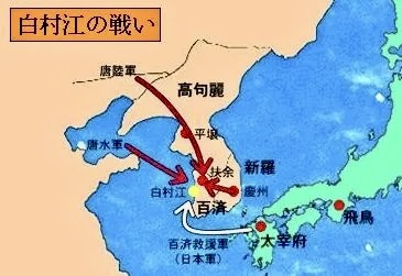 663年、朝鮮半島の白村江(はくすきのえ:現在の錦江河口付近)で、唐・新羅連合軍と、1度は滅ぼされた百済との間で戦いが勃発する。