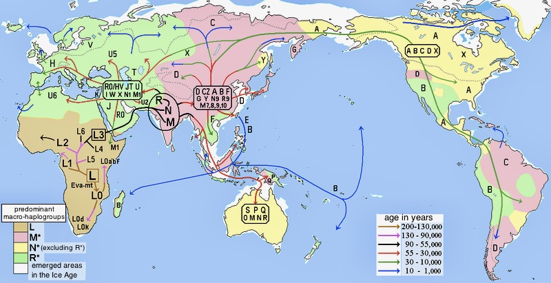 その後、5万年前以降にアフリカを出て、ヨーロッパ、アジア、シベリア、オセアニア、アメリカへと拡散していった。