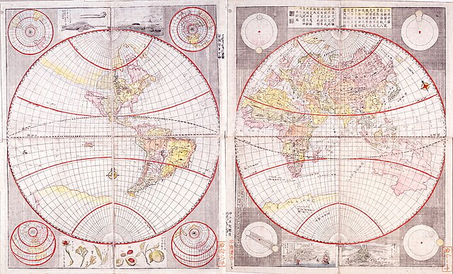 オランダ人の地球儀を見ると、日本は「たた心ひろき池の面に、ささやかなる一葉を散らしかけたる如き小島」にすぎない。異国の人に対して、その小島が日月の現れた国であり、「万邦ことごとくその恩光を被らぬものはない」といっても、到底通用しない。