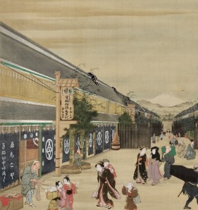 浮絵とは、線遠近法を用いて、建物の室内風景や街並みの景観に奥行きを作り出した浮世絵のことである。