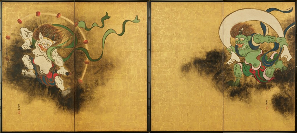 「夏秋草図屏風」は、尾形光琳の「風神雷神図屏風」の裏に描かれたもので、雷神の裏には雨に濡れた夏草が、風神の裏には風になびく秋草が描かれている。
