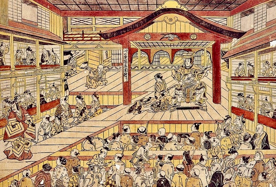 奥村政信(1686〜1764)は、日本で初めて線遠近法を取り入れた浮世絵師とされている。