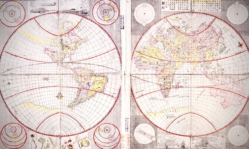 そして、その証拠として、オランダの「地球図」を取り上げ、日本は「たゝ心ひろき池の面にさゝやかなる一葉を散しかけたる如き小嶋」にすぎないと指摘する。