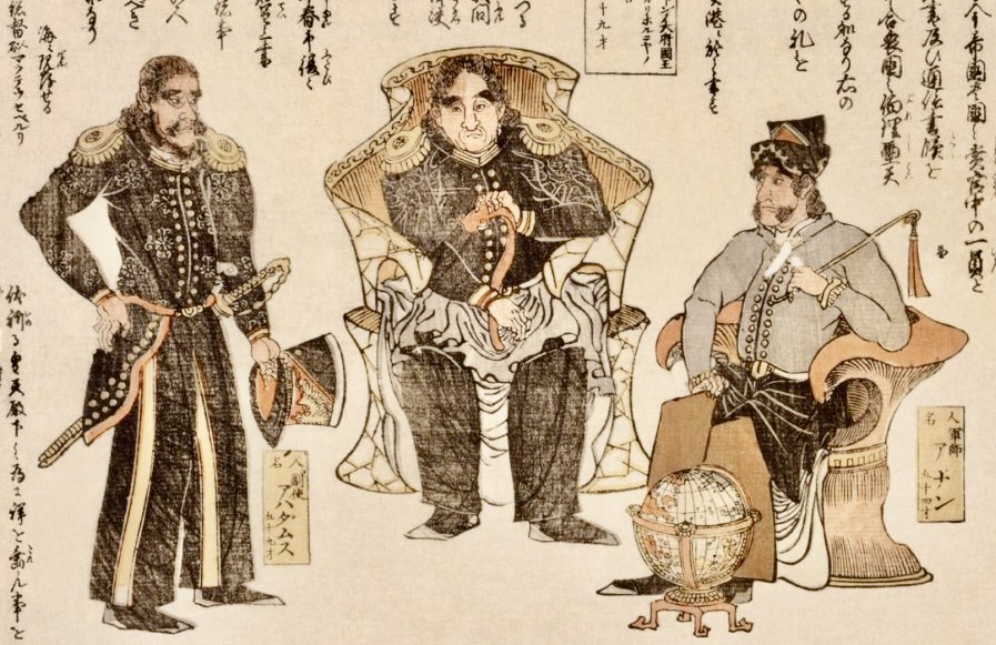 さらに、独立戦争を経て急速に発展を遂げたアメリカが太平洋へと進出し、通商を求めてペリーの艦隊(いわゆる「黒船」)が1853年に来航、これが1858年の日米修好通商条約の締結へとつながった。