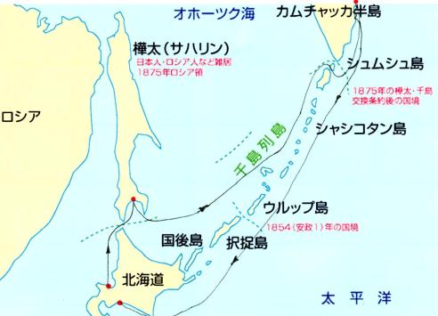 明治維新後になると、新政府内では樺太放棄論が強まり、1875年に「樺太千島交換条約」が締結された。この条約により、千島列島全島を日本領、樺太全島をロシア領とする国境が正式に確定した。