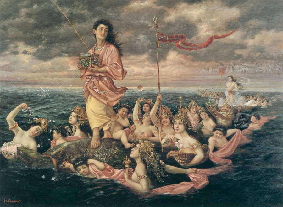 帰国後、山本芳翠は仲間の洋画家たちとともに1889(明治22)年に「明治美術会」を設立し、洋画の普及に努めた。そして、その一環として、日本人の感受性に合った表現を模索する試みにも取り組んだ。