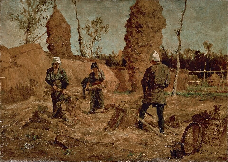 留学前の浅井忠の画風は、バルビゾン派を代表する画家の一人ジャン=フランソワ・ミレーを思わせることがある。